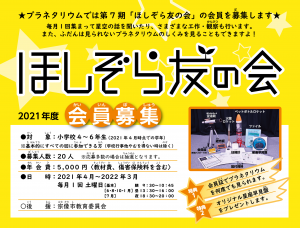 ← 第7期ほしぞら友の会(2021年度)会員募集
